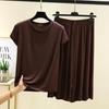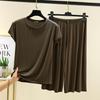 Discover ultimate comfort with this Women's Plus Size Modal Short Sleeve Casual Set, featuring Korean style and wide-leg pants. Crafted from high-quality modal material, this two-piece homewear ensemble offers a breathable and luxurious feel, perfect for lounging or casual outings. The solid pattern and absence of decoration provide a minimalist yet chic look, while the short sleeves and wide-leg design ensure ease of movement and a relaxed fit. Ideal for those seeking a blend of style and comfort in their everyday wardrobe.