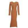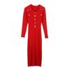 Women's French Polo Collar Knitted Dress with Gold Thread and Metal Cufflinks for Autumn/Winter Slim Fit