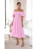 2024 Letní šaty s jedním ramenem, nabíranými rukávy, slim dlouhé