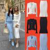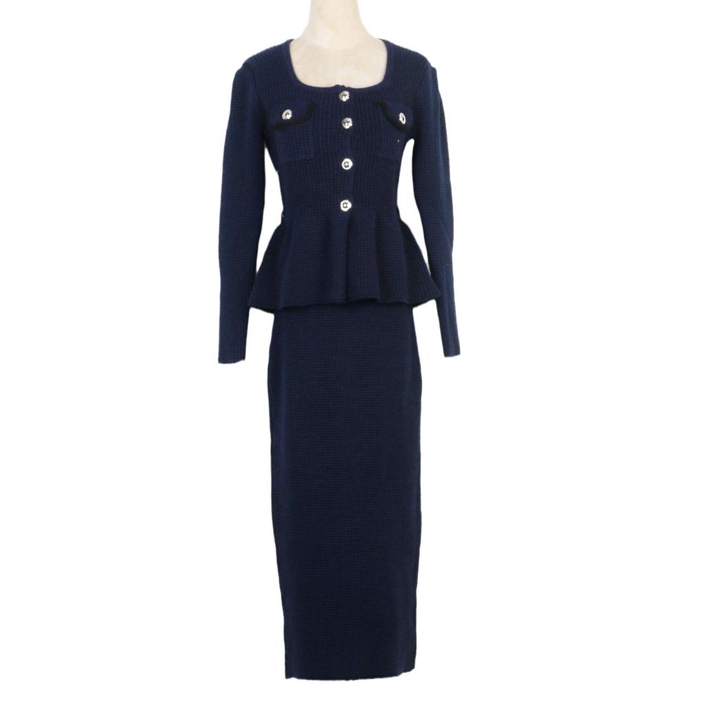 Zhuoya Spring French Socialite Square Neck Knit Ruffle Fishtail Dress Set