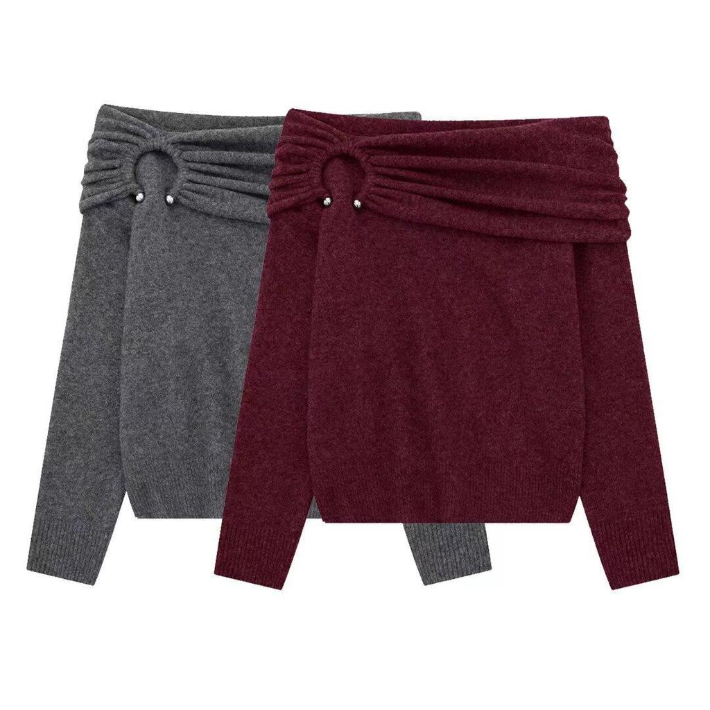 European and American Women's Fashion 2024 Autumn/Winter Street Style Pleated Knit Sweater