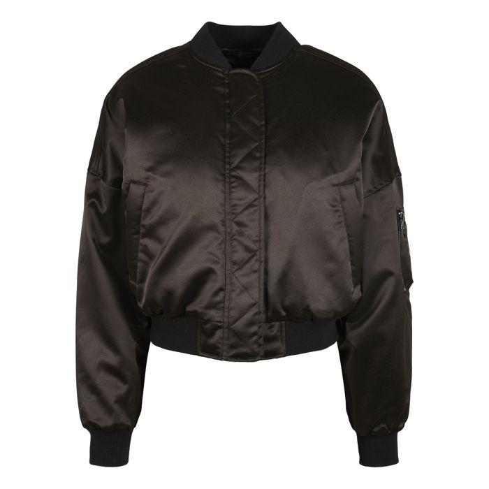 Bomber femme - Urban Classics - Oversized satin - Noir - Doublé taffetas - Rembourré