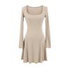 French Style Slimming Knit Dress - Square Neck, High Waist, Big Swing, Perfect for Autumn and Winter