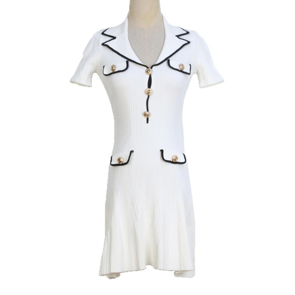 Elevate your spring and summer wardrobe with this stylish slim-fit dress featuring a contemporary color-block design and a classic lapel collar. With its short sleeves and A-line silhouette, it offers a flattering and comfortable fit suitable for various occasions. Made from high-quality artificial silk material and embellished with a touch of luxurious ice silk, this dress ensures a soft, breathable, and lightweight feel. Carefully crafted in China, this chic dress is perfect for keeping you fashionable and cool during the warmer months.