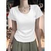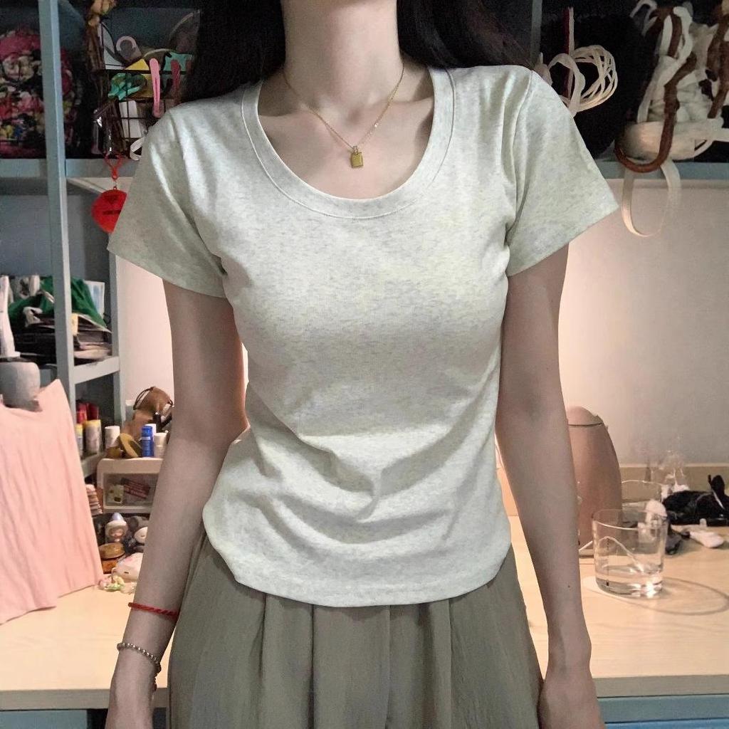 Elevate your summer wardrobe with this elegant U-neck slim fit T-shirt, perfect for warm-weather outings. Crafted from high-quality, breathable cotton, this T-shirt provides exceptional comfort and a soft feel against the skin. Featuring a solid pattern and short sleeves, it offers a versatile and timeless style that pairs effortlessly with any outfit. The round neckline adds a touch of classic charm, making it a must-have for casual yet chic summer looks.