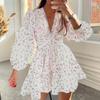 This charming short dress is designed for the modern woman with a taste for sweet and stylish prints. Featuring a flattering V-neckline, it effortlessly blends European and American fashion aesthetics. The waist is adorned with delicate lace detailing, adding an extra touch of femininity to the design. Made from high-quality polyester, this dress offers both comfort and durability, making it a perfect choice for spring outings or special occasions.