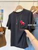2025 Summer Women's Embroidered Dog T-shirt - Short Sleeve, Simple Line Design, Round Neck