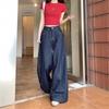 Petite High Waist Retro Dark Blue Wide Leg Jeans for Women - Casual, Slimming, Floor-Length Trousers