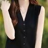 2025 Summer Women's Ice Silk Sleeveless Cardigan Vest with Buttons