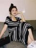 Striped Casual Knitted Dress - Women's Summer 2025, Loose Slimming Mid-Length, Short-Sleeve Lazy Style