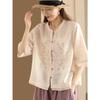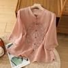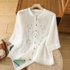 2025 Léto Dámská Literární Móda Ramie Výšivka Stojáček Blůza - Jednobarevná, Volný Střih, Pětirukávový Design
