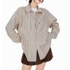 American Retro Striped Turn-Down Collar Shirt Jacket, Spring 2025 Collection, Casual Loose Long Sleeve Top.