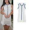 2025 Spring/Summer Elegant Sleeveless Denim Patchwork Dress with Pleated Hem