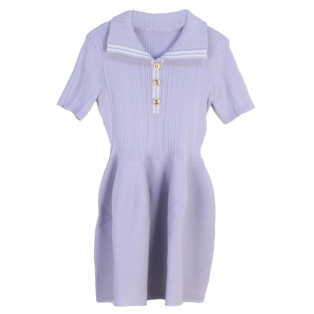 Women's Short-Sleeve Color Block Knit Dress – French Minimalist Style, Waist-Cinching, High-End Look for Spring and Summer