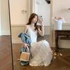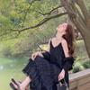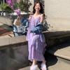 Fialové zeštíhlující midi šaty na špagetová ramínka ve francouzském stylu
