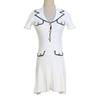 Women's French Sequin A-line Skirt Set with Lapel Metal Buckle and Knitted Hollowed Short Sleeve Cardigan