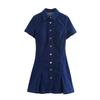 2025 Spring Women's European & American Style Short-Sleeve Denim Midi Dress with Turn-Down Collar