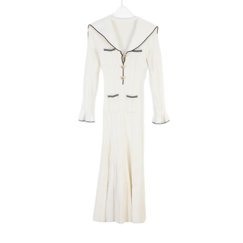Women's European & American V-Neck Sailor Collar Slimming Fishtail Knitted Dress for Spring & Summer
