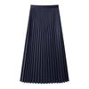 Women's High Waist Gray Pleated Midi Skirt - Slimming A-line for Summer 2025