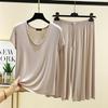 Discover effortless style and comfort with this Women's Casual Two-Piece Set. Crafted from soft, breathable modal, this set features a classic U-neck T-shirt and high-waisted, tie-waist wide-leg pants, both in a sleek solid pattern. Perfect for leisurely outings or relaxed days at home, this ensemble offers a chic, laid-back vibe while ensuring maximum comfort and versatility. The minimalistic design makes it easy to mix and match with other wardrobe staples, providing a simple yet elegant addition to any casual wear collection.