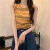 Rainbow Stripe Lettuce Edge Slim Tank Top - Women's Summer Layered Outerwear