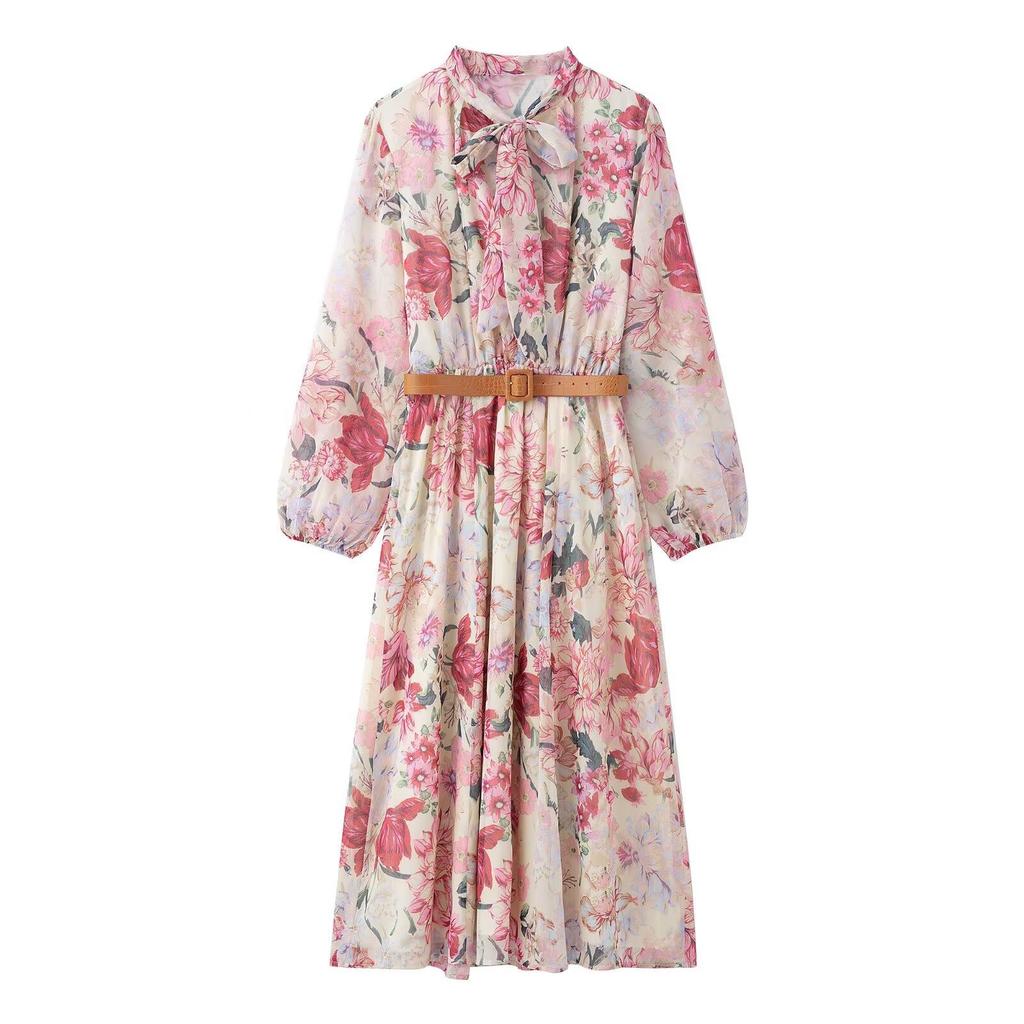 Step into elegance with the Spring 2025 Floral Print Belted Midi Dress, designed for the modern woman who cherishes timeless style. This dress features a delightful floral print that captures the essence of spring, wrapped in a soft and durable polyester material. The flattering midi length is complemented by a chic bow collar, adding a touch of sophistication to your ensemble. Long sleeves offer versatility for various occasions, while the included belt accentuates your waistline, creating a graceful silhouette. Perfect for both daytime outings and evening gatherings, this dress seamlessly blends comfort and style.