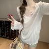 Summer Micro-Sheer Ruffle V-Neck Cardigan: Women's Long-Sleeve Loose Fit Lightweight Outerwear.