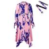 This stylish plus-size women's dress is designed with an eye-catching irregular lapel and a sophisticated temperament print. Made from high-quality polyester, it offers both comfort and durability. The flattering silhouette accentuates your curves, making it a perfect choice for various occasions, from casual outings to formal gatherings. Enjoy a blend of elegance and style with this uniquely crafted dress that celebrates both European and American fashion sensibilities.