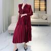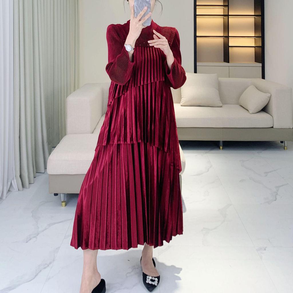 Elegant Red Velvet Beaded Evening Gown for Autumn-Winter Festive Weddings