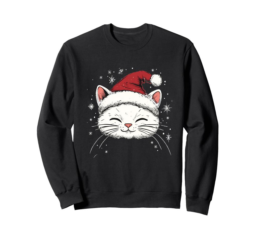 Xmas Cat Santa Hat Women Girls Merry Christmas Sweatshirt