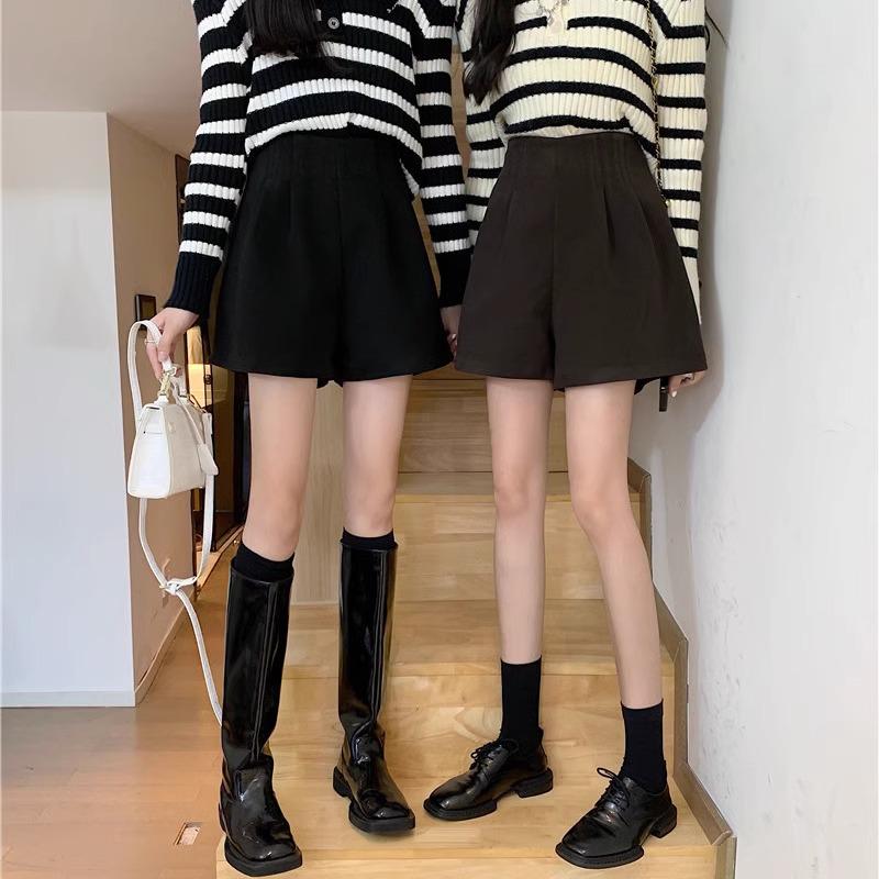 New 2024 High-Waisted Slimming Woolen Booty Shorts - Petite Women's Wide-Leg Pants for Autumn/Winter
