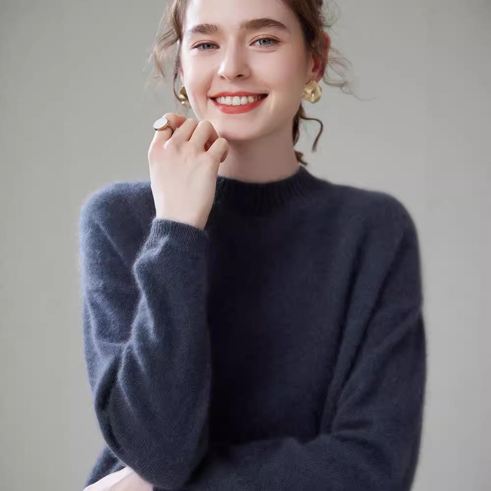 Women's 100% Cashmere Round Neck Loose Sweater for Autumn & Winter