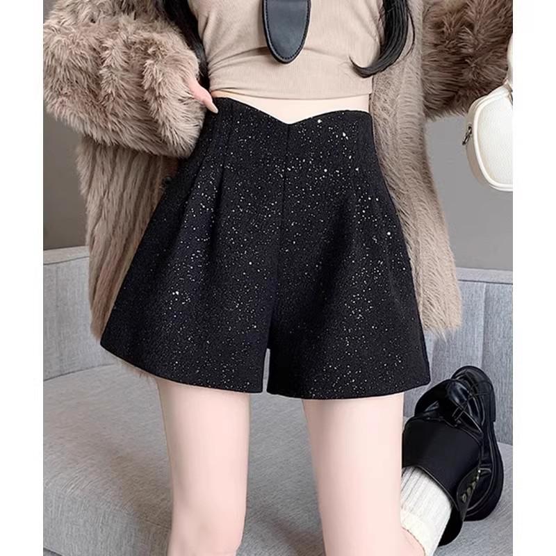 Elevate your autumn and winter wardrobe with these chic high-waisted tweed shorts, designed with a stunning sequin finish. Tailored specifically for a plus-size figure, these wide-leg shorts feature a slimming design that complements your silhouette. Crafted from premium polyester, they offer both style and comfort, making them a versatile addition to your seasonal collection. Perfect for adding a touch of sparkle to your ensemble.