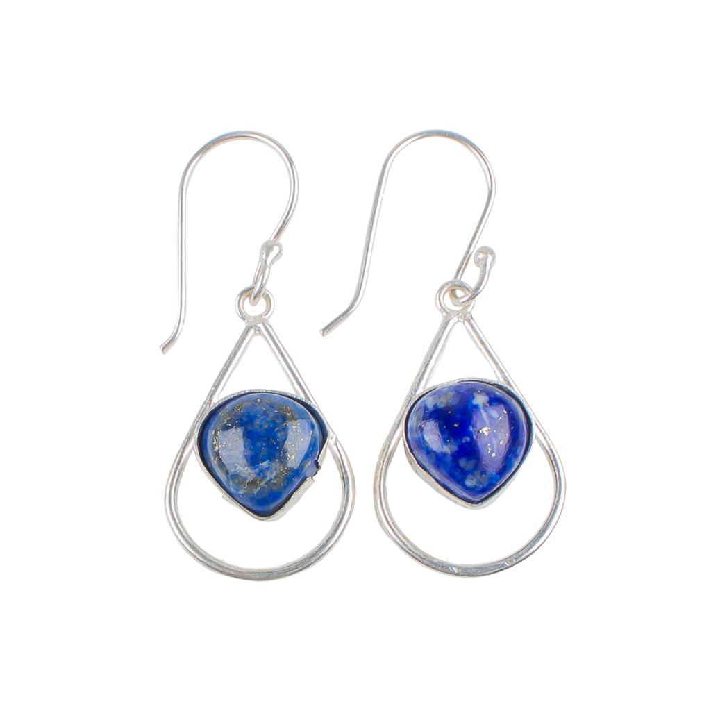 Přírodní drahokam Lapis Lazuli Stříbro ryzosti 925 Visací náušnice Svatební dar EE-38-25