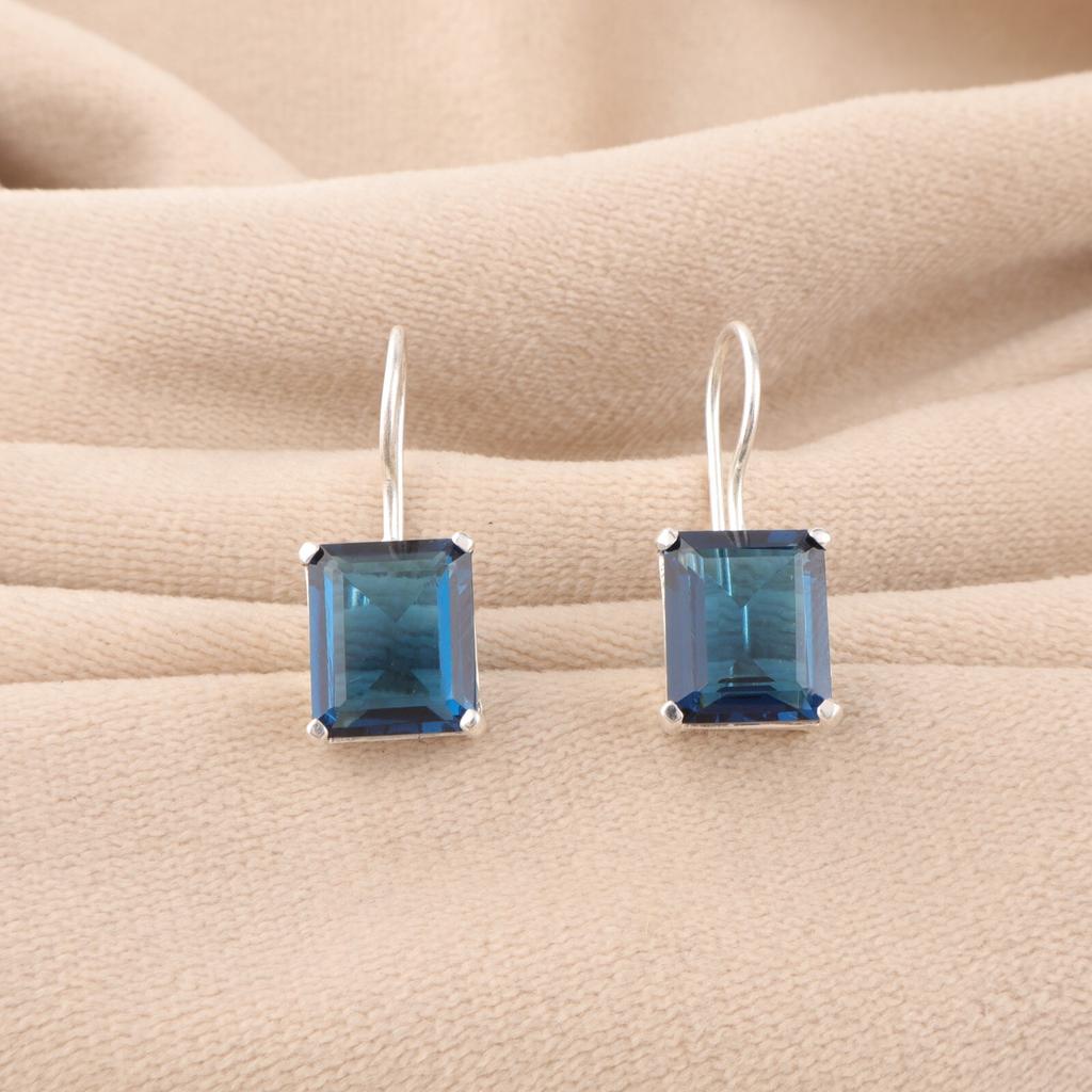 Přírodní Londýnský modrý topaz drahokam 925 Sterlingové stříbro Ručně vyráběné náušnice 1,06" EE-167-1