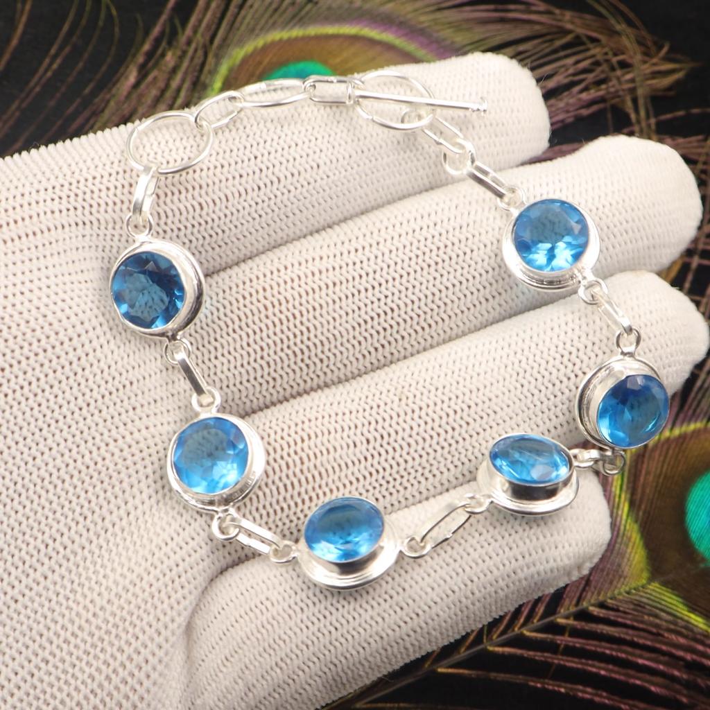 Swiss Blue Topaz Gemstone 925 Sterling Silver Jewelry Women's Gift Bracelet 7-9" RB-13-1