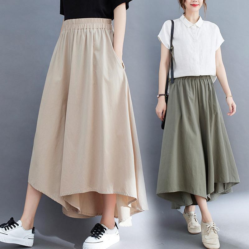 These elegant plus size pants are crafted from comfortable polyester, offering a luxurious ice silk feel perfect for summer wear. Designed with a high waistline, they provide a slimming effect while maintaining a relaxed casual style. The wide-leg design mimics an irregular swing skirt, offering a unique and stylish silhouette that effortlessly enhances any wardrobe.