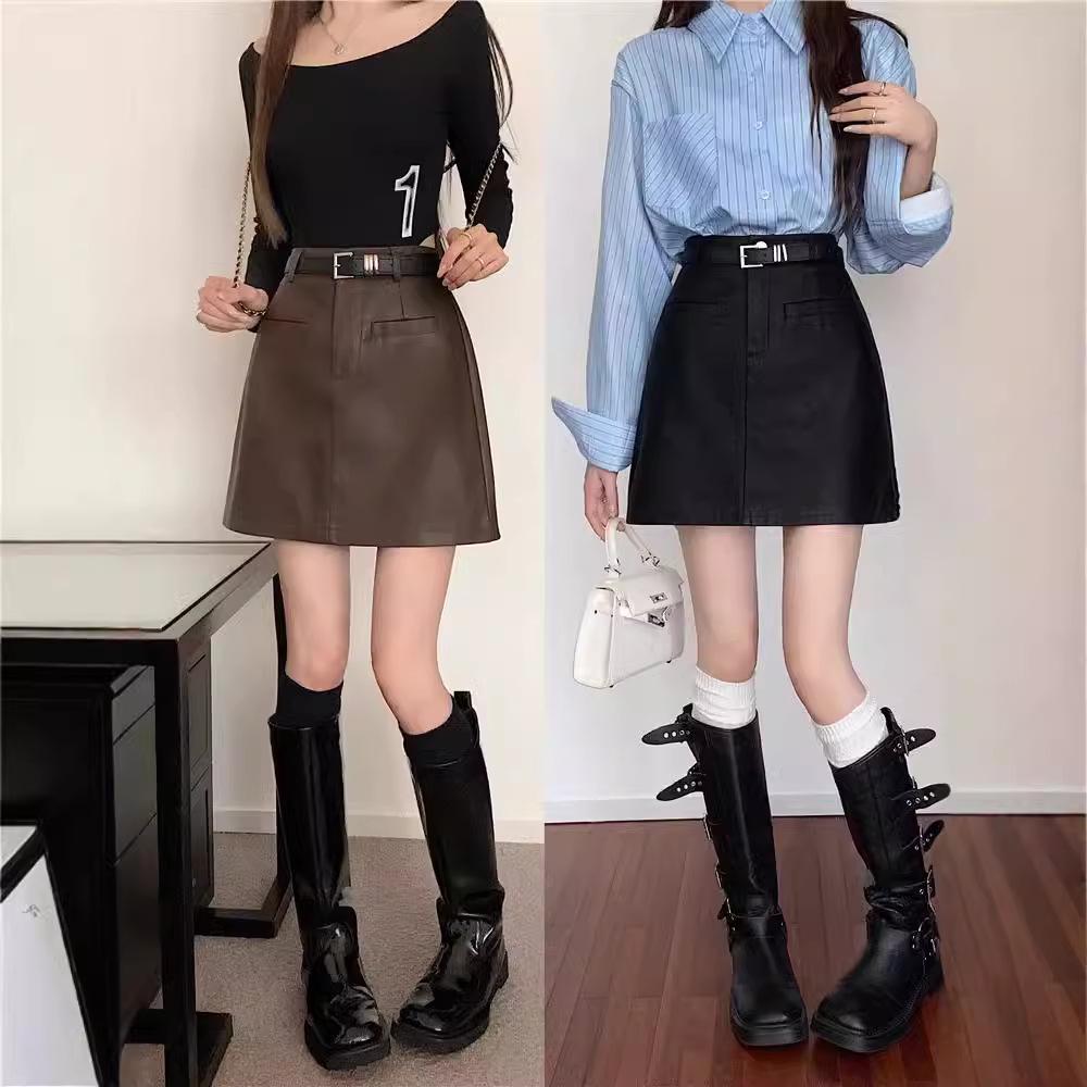 Elevate your autumn and winter wardrobe with this high-waisted A-line mini skirt. Crafted from quality polyurethane, it offers a sleek and solid pattern perfect for a casual style. Designed to be slimming and tummy-covering, this bodycon skirt flatters your silhouette while providing comfort and ease of movement. Ideal for pairing with your favorite sweaters and boots, it's a versatile addition to any stylish ensemble.