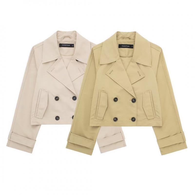 Nový jarní dámský ležérní krátký trenčkot ve streetovém stylu