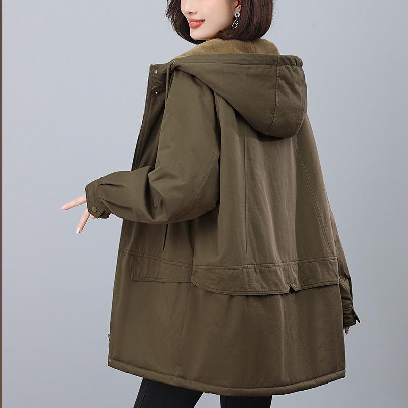 2024 Women's Plus Size Velvet Parka: Mid-Length, Loose Fit, Thickened Hooded Winter Coat for Middle-Aged Moms