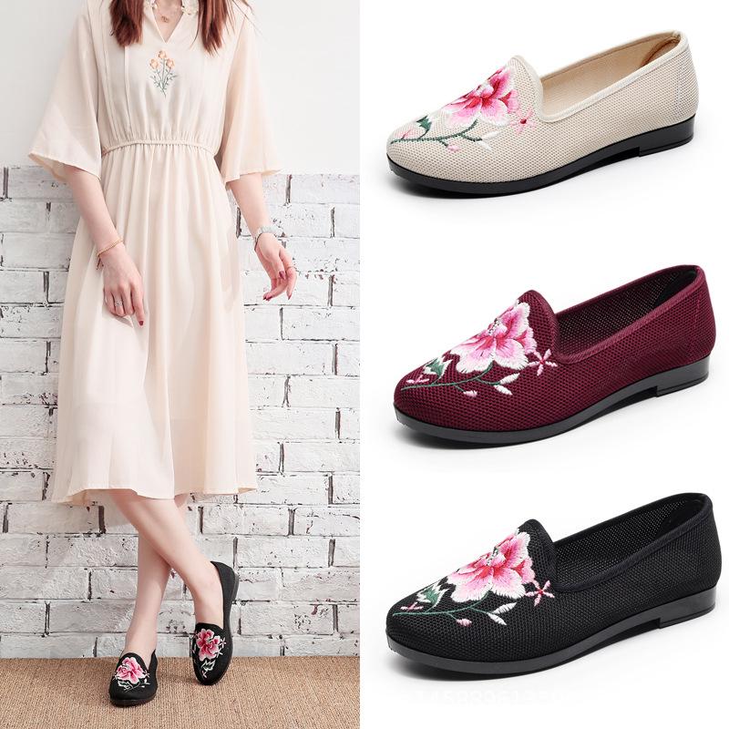 Women's Embroidered Slip-On Shoes – Soft, Non-Slip, Flat Heel Casuals for Seniors