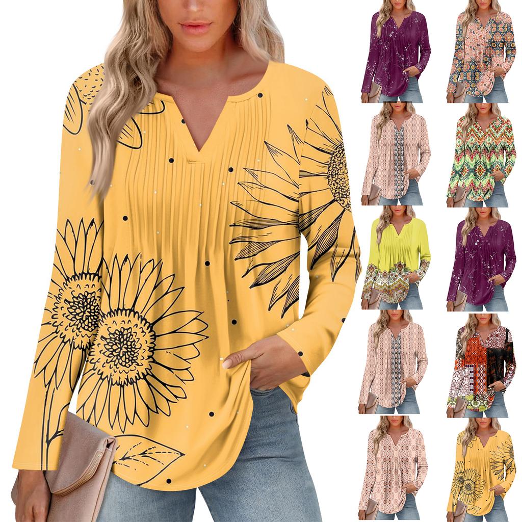 Dámská móda Ležérní Plisované Tričko s V výstřihem a Dlouhým Rukávem Elegantní Top