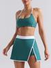 Nude Feeling Colorblock Yoga Set: Women's Sexy Backless Sports Bra & Tennis Skirt