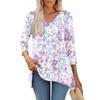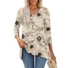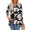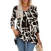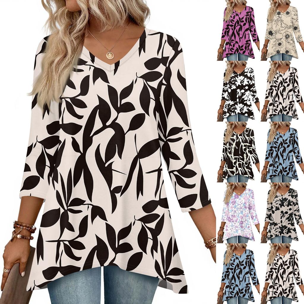 Dámské topy s výstřihem do V a 3/4 rukávem, ležérní košile střední délky, módní tuniky s potiskem