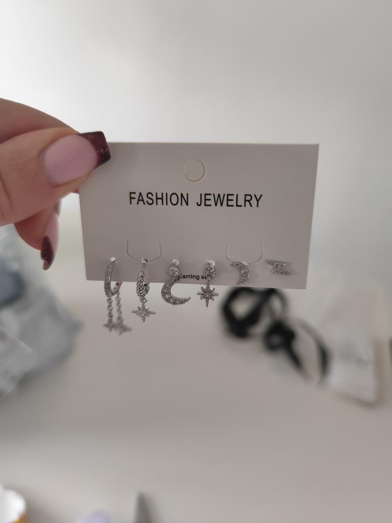 Set náušnic s třásněmi ve tvaru hvězdy a měsíce se zirkony