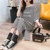 YYFS Dámská móda Léto Jaro Pruhovaný potisk 1/2 rukávy Kulatý výstřih Volný pas Ležérní šaty