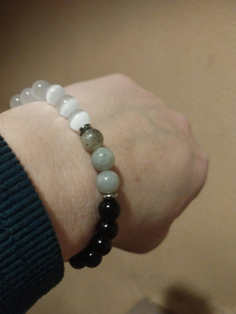 8mm Náramek z měsíčního kamene s kočičím okem a obsidiánu - Dámské jógové šperky