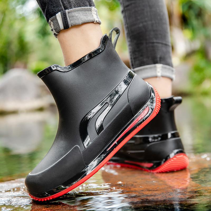 rain shoes men's medium tube rain boots low tube water shoes fashionable non-slip waterproof short tube thick-soled PVC wear-resistant water boots