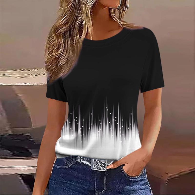 Letní dámské tričko s krátkým rukávem a kulatým výstřihem Volné ležérní 3D digitálně potištěné tričko pro ženy Košile