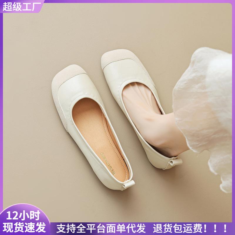 Square head single shoes women's summer flat bottom retro one-pedal shallow mouth soft sole ballet shoes